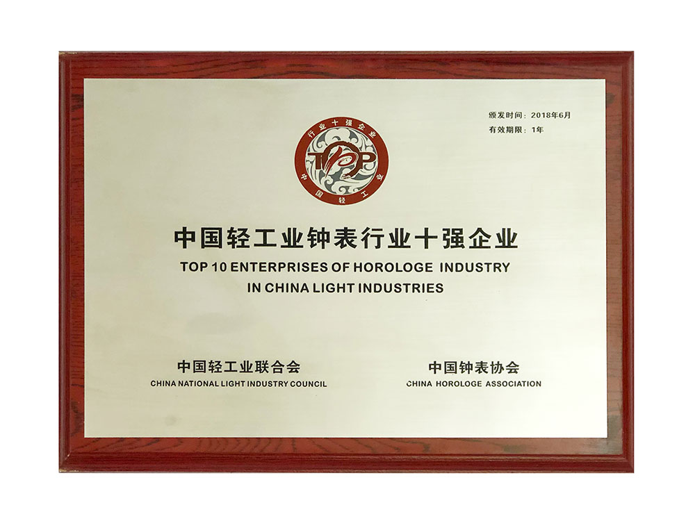 雷諾表榮獲“中國(guó)輕工業(yè)鐘表行業(yè)十強(qiáng)企業(yè)