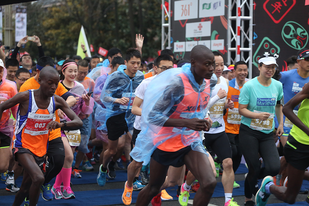 本屆賽事起點(diǎn)位于鳳凰體育場(chǎng),途經(jīng)宣化門、熊貓谷和都江堰市人民政府傾力打造的天府綠道、環(huán)山旅游線(熊貓綠道),馬拉松終點(diǎn)為“世界文化遺產(chǎn)”青城山。來(lái)自29個(gè)國(guó)家和地區(qū)的3萬(wàn)名跑者踏上最美賽道,起跑前他們高聲齊唱《歌唱祖國(guó)》和《我和我的祖國(guó)》,現(xiàn)場(chǎng)氣氛十分燃!天下著小雨,跑馬人熱情不減。今年是成都雙遺馬拉松連續(xù)開跑第五年,五年奔跑歷程,今年的成都雙遺馬拉松更別具意義。