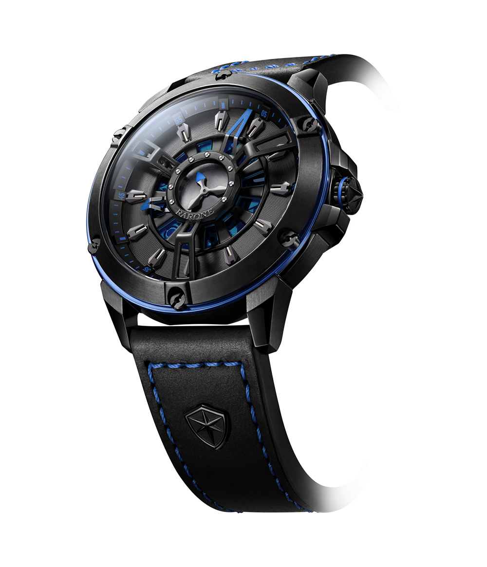 多層疊加的表盤設(shè)計搭配繁復(fù)制作工藝,造型張弛有力,字面將古羅馬戰(zhàn)車車輪、鉚釘、盾牌等獨特元素巧妙運用,表款整體設(shè)計錯落有致,透過表盤的折疊式秒針以及中間鏤空的戰(zhàn)車車輪造型,可見機(jī)械機(jī)心的律動之美!
