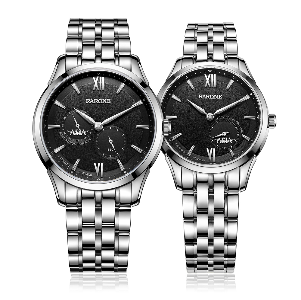 2016年新品以男女對表形式呈現(xiàn),搭載進(jìn)口全自動機械機芯,透視底蓋清晰可見機芯運作。男女表在設(shè)計細(xì)節(jié)上做了區(qū)別,更加匹配男女士對美的不同追求。除了經(jīng)典的黑色,間金色之外,新款首次采用鋼藍(lán)色表針和字釘,為商務(wù)用表融入活力元素,同時視覺上更加清爽。大兩針搭配60秒功能小眼顯示時間,為當(dāng)下手表的熱門設(shè)計,男表9時位增加一個24小時功能小盤,方便知曉和調(diào)教多維度時間。表盤上的“ASIA”標(biāo)識體現(xiàn)腕表的身份和紀(jì)念價值。